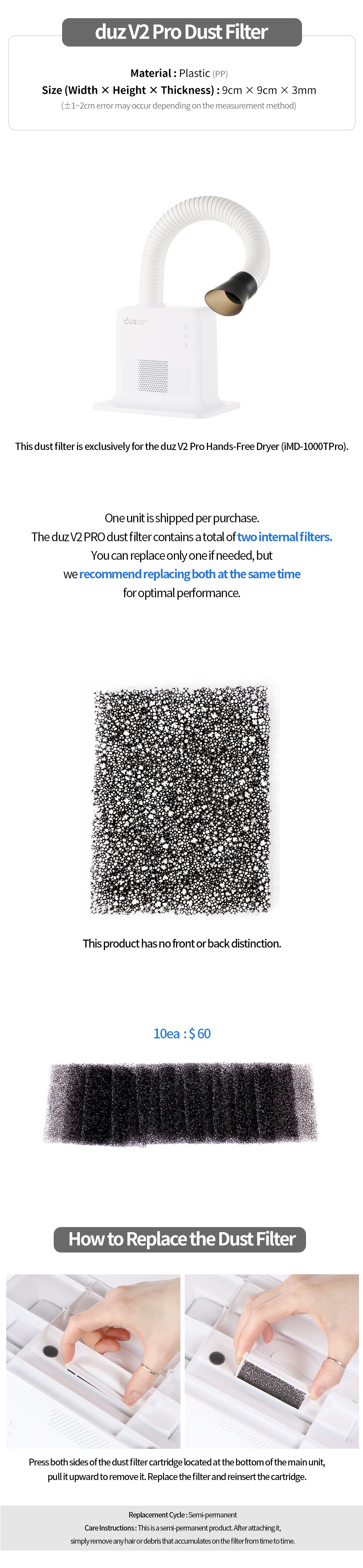 Protect your duz V2Pro Dryer and maintain optimal performance with this 10-pack of high-efficiency dust filters.