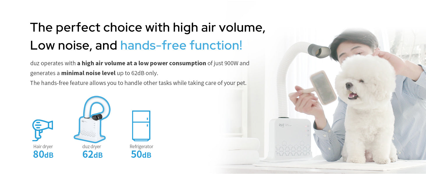 DUZ V2 Super Quiet Hands-Free Pet Dryer: Low-Noise Professional Dog Dryer for Grooming, Comfortable & Stress-Free Drying Tool, Ideal for Noise-Sensitive Small Dogs and Cats