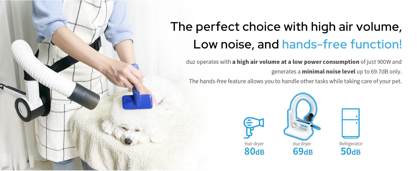 duz V3 Mobile Pet Dryer Kit: 2-in-1 Quiet Portable & Hands-Free Dryer with Holster, Stress-Free Drying for Dogs and Cats, Ideal for Professional Mobile Groomers